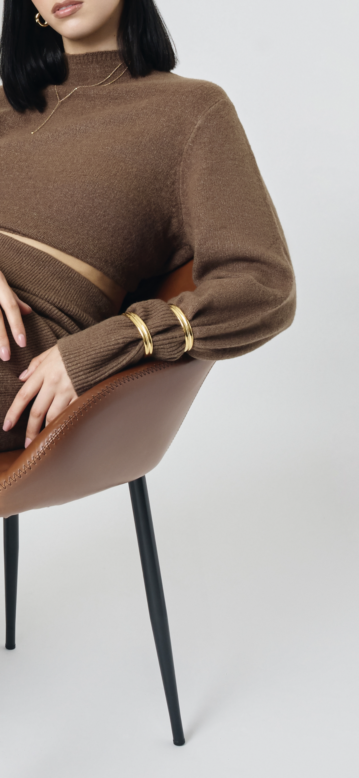 Döu Open Bangle Double Layer Cuff– A sleek and modern design, the Döu bangle features a stainless steel open cuff with a stylish double-layered structure. Coated in luxurious 18K PVD gold plating, this minimalist piece adds a refined touch to your accessory collection, perfect for any occasion.