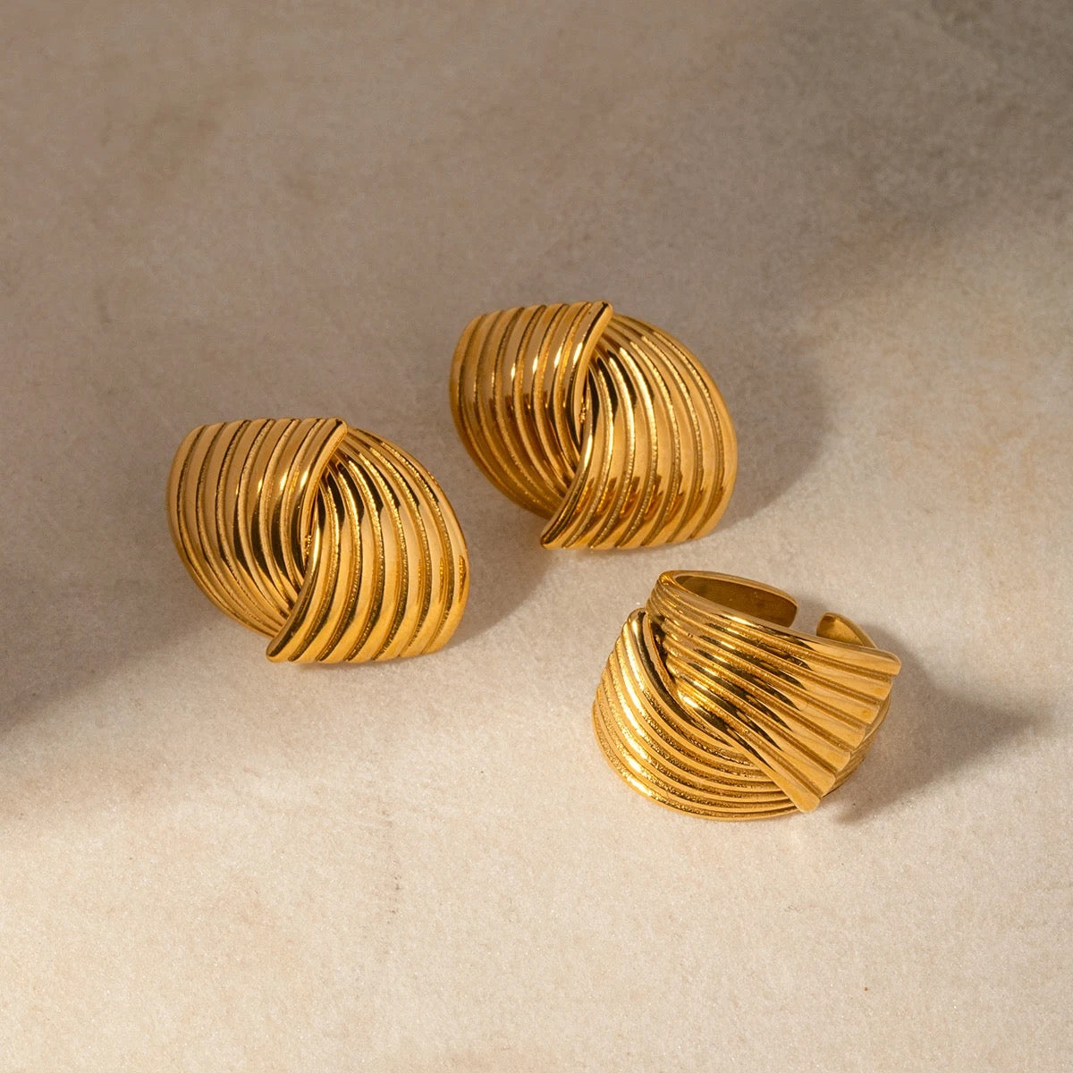 Made from high-quality stainless steel and coated in durable 18K PVD gold plating, the Esta studs are as resilient as they are stylish. Lightweight and versatile, they effortlessly transition from day to night—perfect for formal events or elevating your everyday outfit with a touch of glamour.