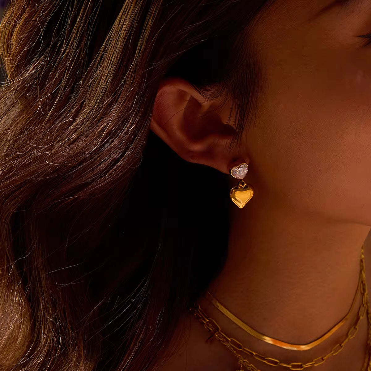 Materials: Stainless steel with 18K PVD gold plating, heart-shaped zircon stones.