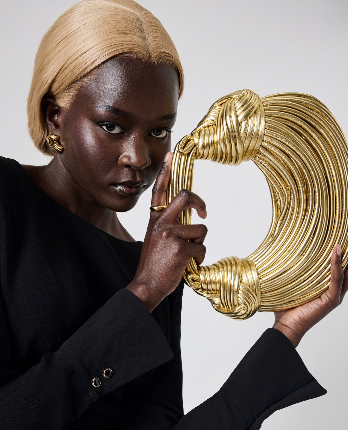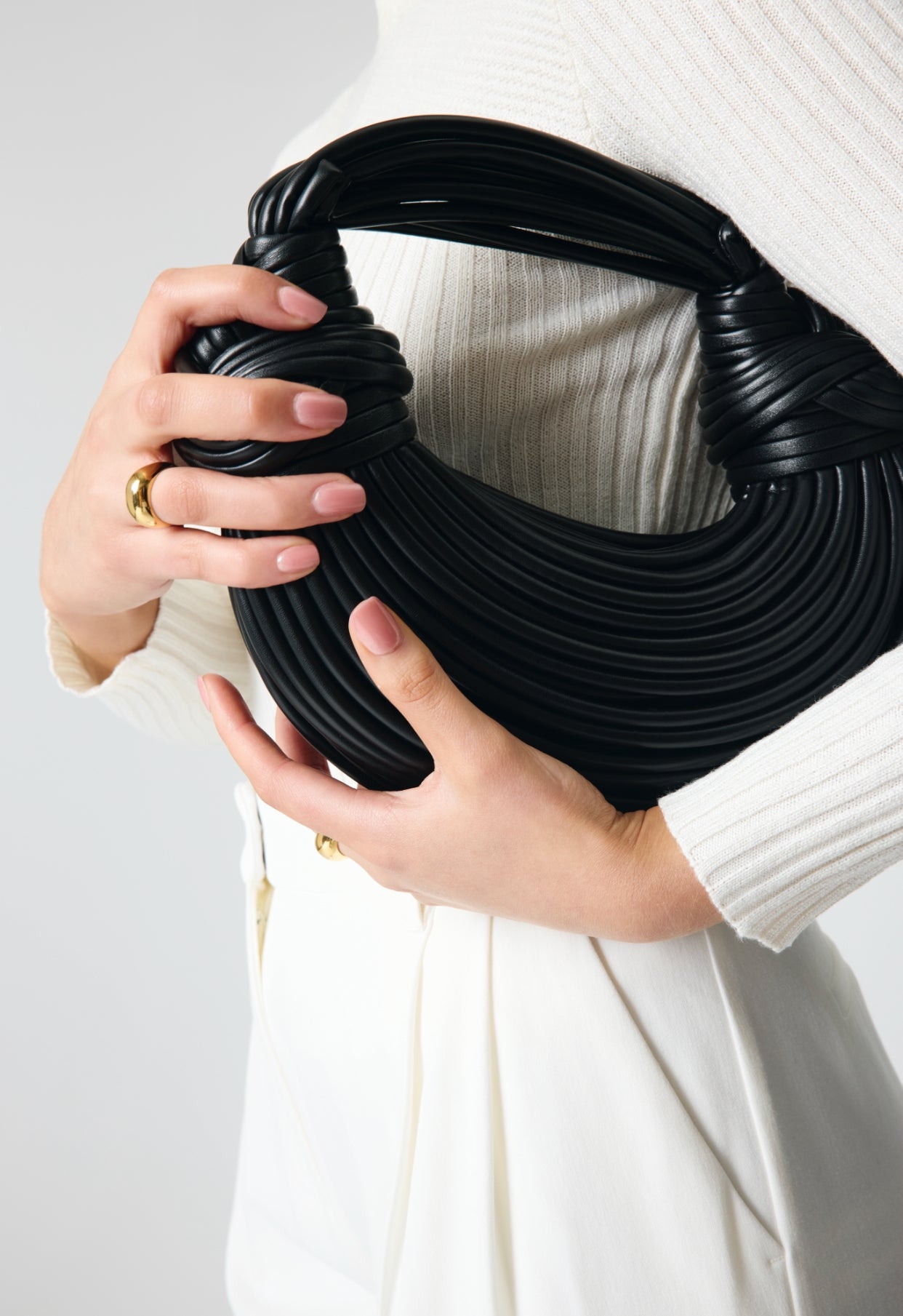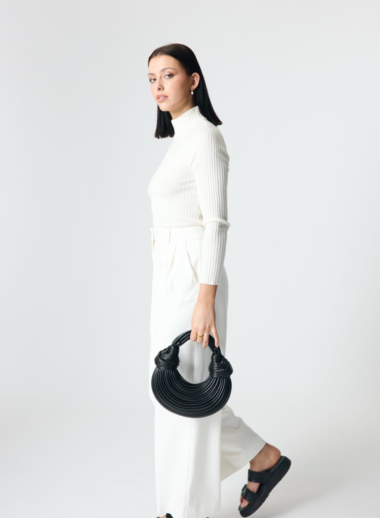 The glamorous Parnah Handbag, a compact accessory radiating luxury and sophistication. Crafted with meticulous detail, it effortlessly enhances your style. Available in Black, Golden, White, and Khaki, it offers versatility in a small size, perfect for a glamorous occasion.