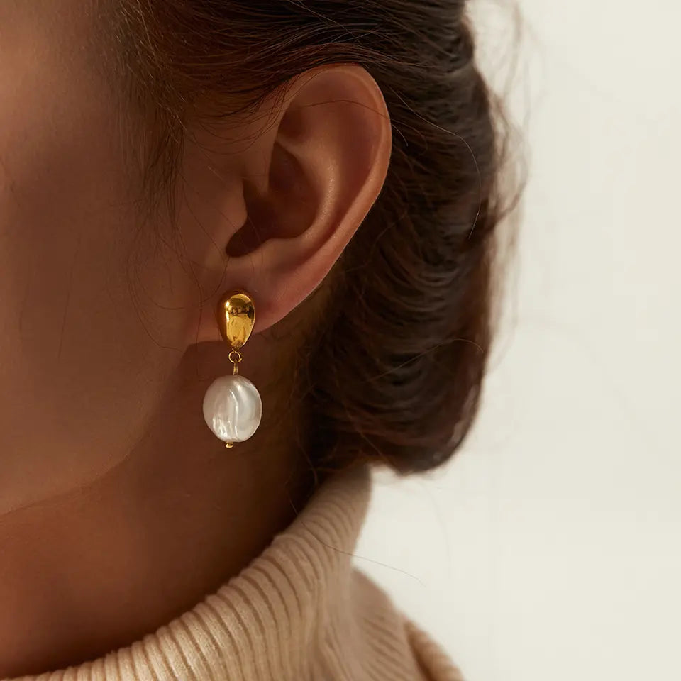 The elegant Pearl Drops, meticulously crafted for timeless sophistication. Featuring lustrous pearls suspended from delicate chains, they exude natural beauty and grace. Versatile for formal or casual wear, these drops elevate any ensemble with their classic charm. Experience luxury and sophistication with these must-have additions to your jewelry collection.