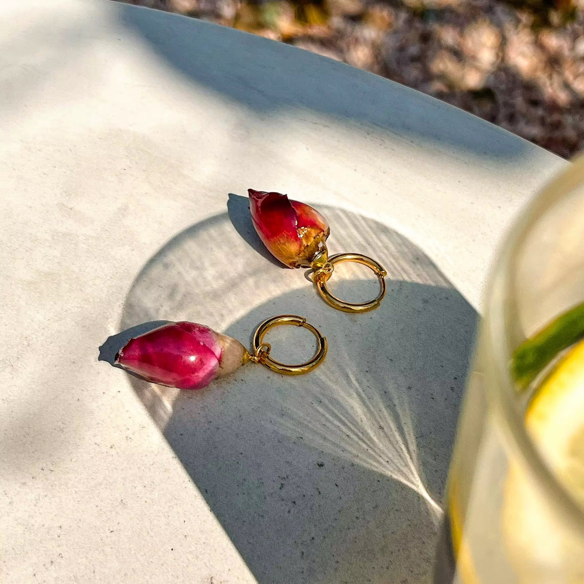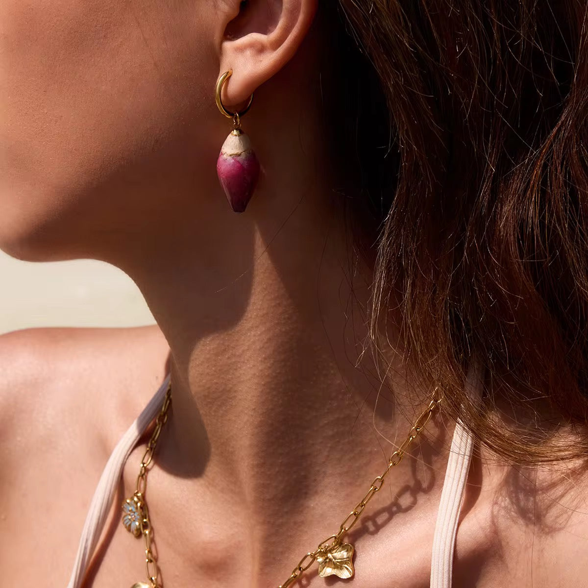 Our Blushing Bloom Earrings are stunning drop earrings featuring a delicate floral design, inspired by nature’s beauty. Crafted from high-quality stainless steel and adorned with 18k gold plating, they offer both durability and elegance. The intricate petal detail adds a touch of sophistication, making them perfect for any occasion.