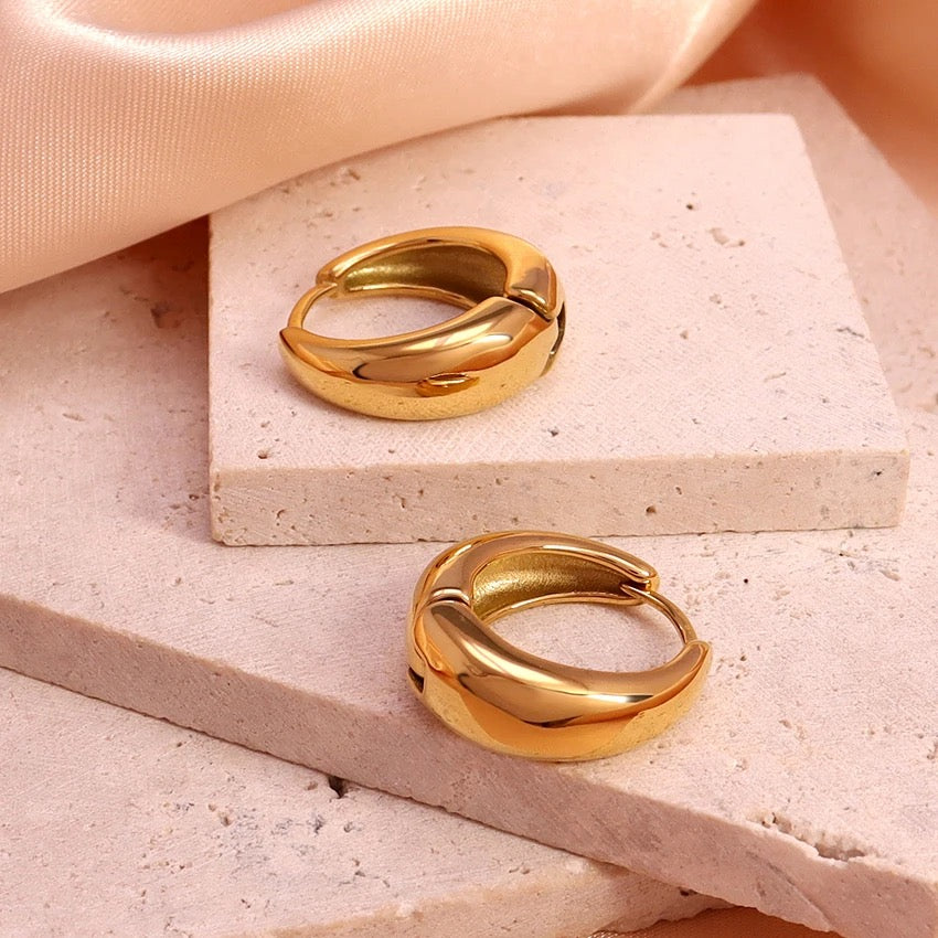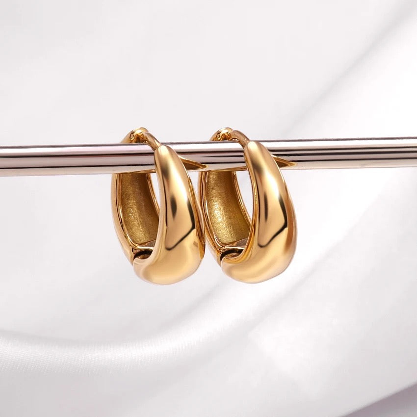 Crafted with stainless steel and 18K PVD gold plating, Zam earrings boast a stunning, elegant design that is perfect for any occasion. Their table hoops add a touch of sophistication, making them the perfect accessory to elevate any outfit. Experience luxury and style with Zam.
